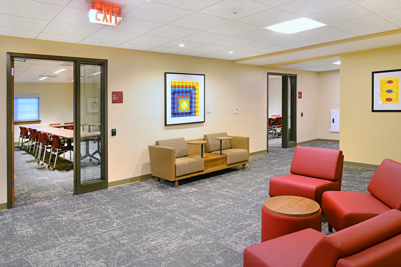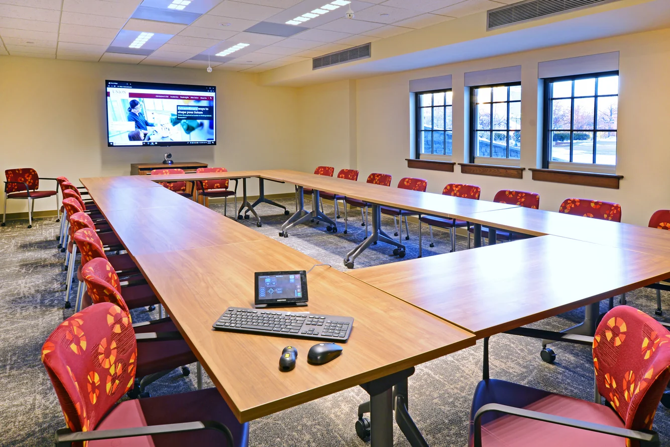 For Union College, we designed a notable yet functional State-of-the-art conferencing and event facility, the O’Brien Center for Collaboration and Engagement. Its advanced technology and elegant, modern finishes, fixtures and flexible furniture support a variety of functions for the impressive classic campus. Taking cues from the historical campus character, the 6,000 sf addition was carefully designed to blend with adjacent Grant Hall, the existing campus Admissions building. The expansion’s vision included an inspiring conferencing space and a striking lobby with adjacent meeting spaces to support admissions activities, meetings, and other special gatherings.