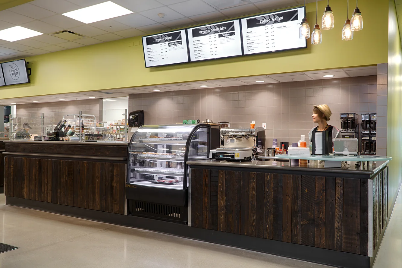 The design features a flexible layout and a unique shopping experience for the consumer, including a prepared foods section and indoor/ outdoor cafe spaces. The Community Room, outdoor seating areas and seasonal sales areas foster interaction between the Co-op and the community. A secondary entrance and pedestrian walkway, coupled with proximity to mass transit and the West End neighborhood nurture the pedestrian-friendly nature of the store. The Co-op, in effect, is woven into the fabric of its new location.