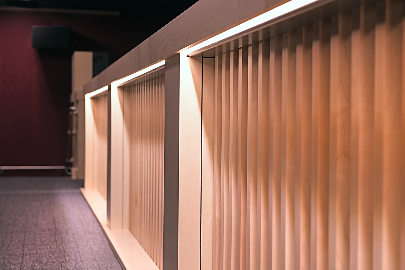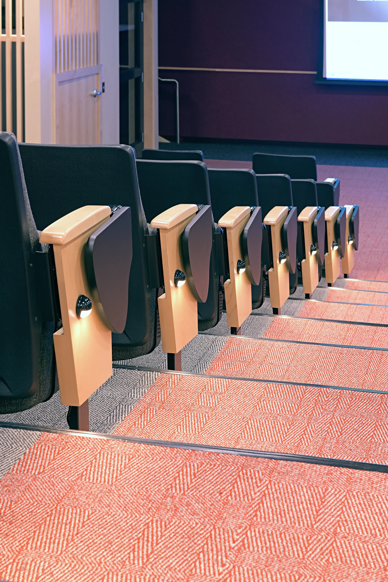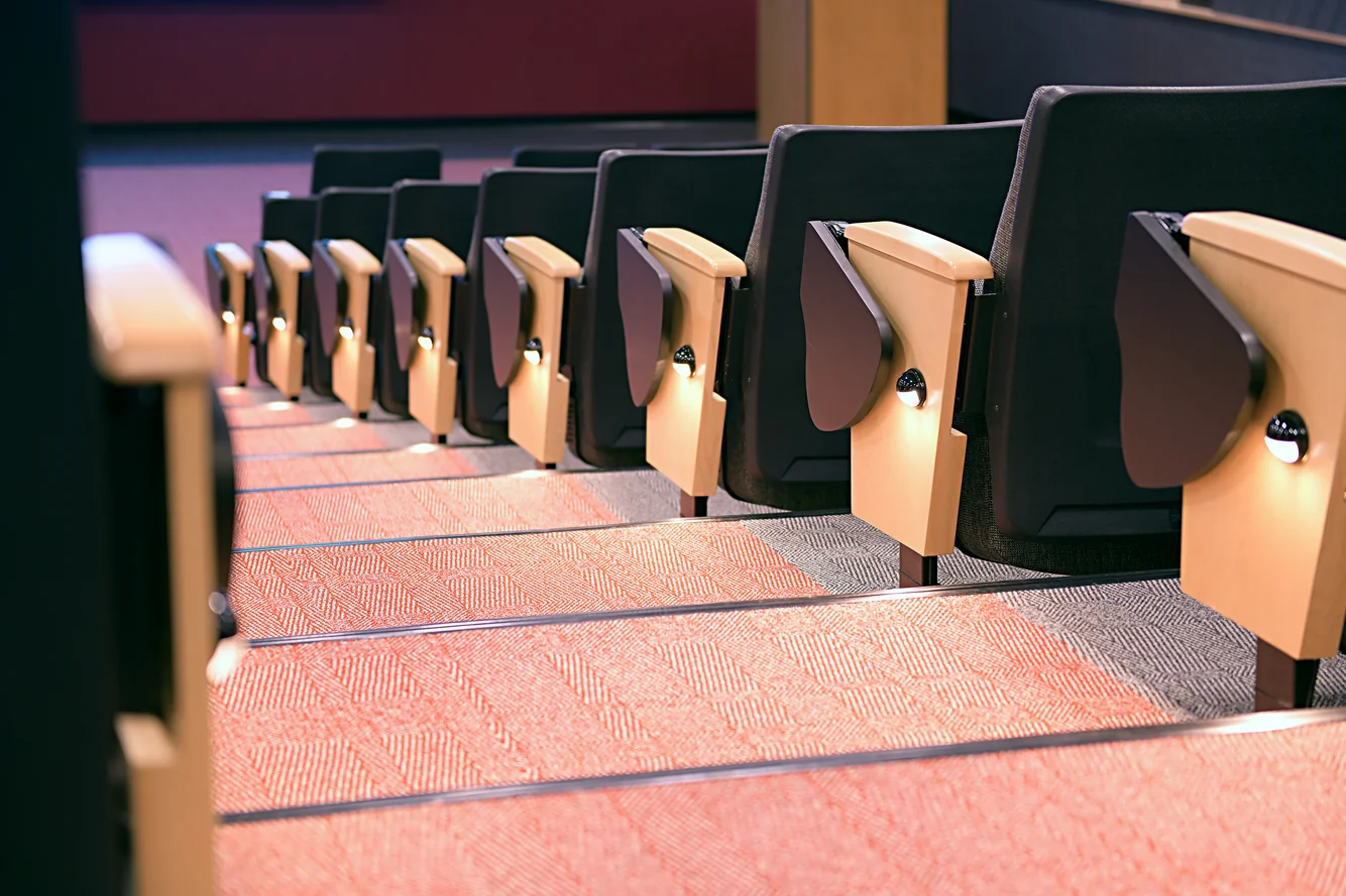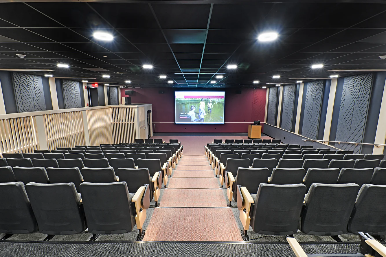 After a significant sprinkler main break flooded the main auditorium at Union, Envision collaborated with several campus constituents to design a complete renovation of the space. A multi-use space, the auditorium serves as an academic classroom, a large group meeting space, a movie theater and a social gathering hub for students, faculty and staff. Careful attention was paid to acoustic design to resolve sound issues which had previous existed in the auditorium. Accessibility was elevated as a priority, with the addition of a small lift inside to allow for universal access to the space.
