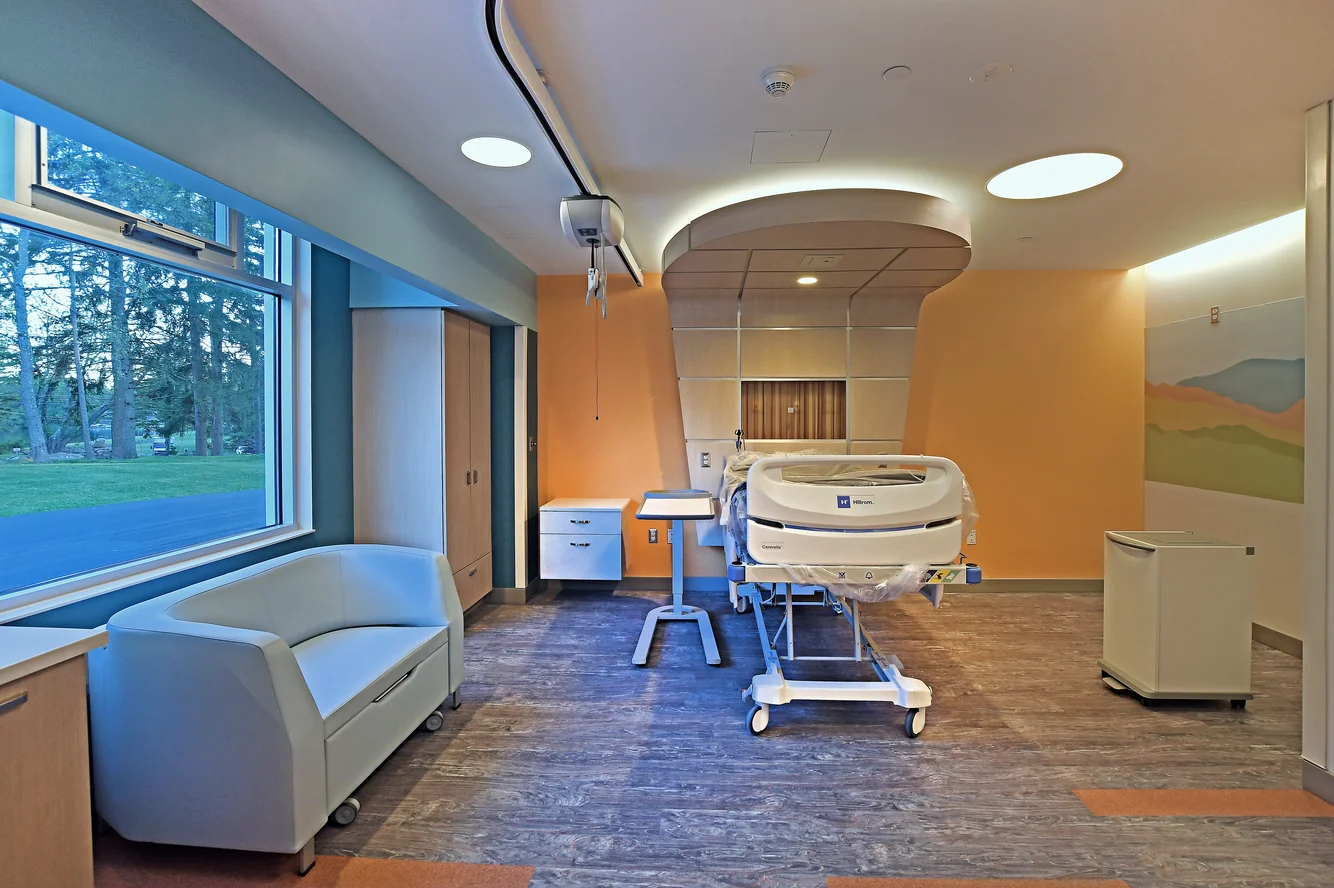 Within this project a building that housed an insurance agency was transformed into a facility for caregivers, families, patients, students and researchers. An invigorating palette of interesting colors and textures runs through the healthcare clinic, patient rooms, and support spaces, as well as the adjacent school and training center.